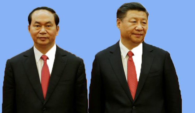 Trần Đại Quang và Tập Cận Bình tại hội nghị Con Đường Tơ Lụa ở Bắc Kinh trong tuần qua.