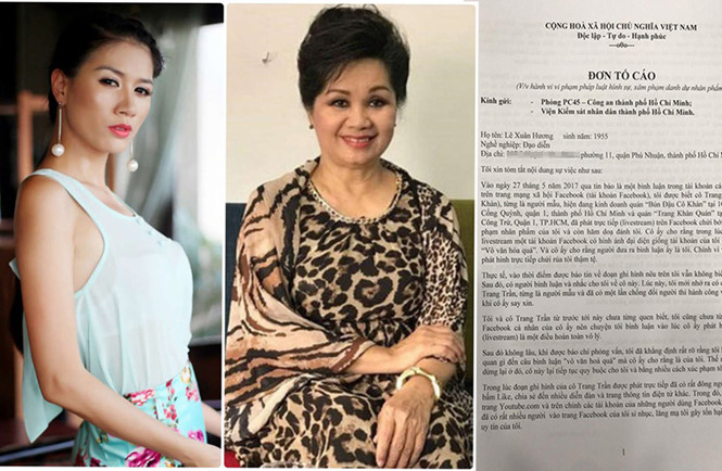 Trong đơn tố cáo, nữ nghệ sĩ sinh năm 1955 nêu rõ cựu người mẫu Trang Trần (biệt danh Trang Khàn) có hành vi nhục mạ, xúc phạm và dọa đánh mình khi livestream trên mạng xã hội với hàng ngàn người theo dõi. Cô này còn thách thức nghệ sĩ đàn chị có bản lĩnh thì cứ việc kiện cáo ra tòa.