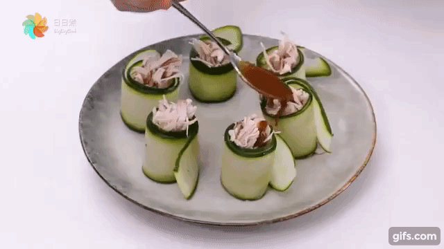 - Cuối cùng thì rưới nướt sốt đều lên các cuốn dưa chuột thịt gà là xong.