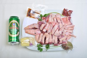 - Đổ bia xâm xấp mặt thịt, đun nhỏ lửa tới khi vịt chín mềm thì tắt bếp.