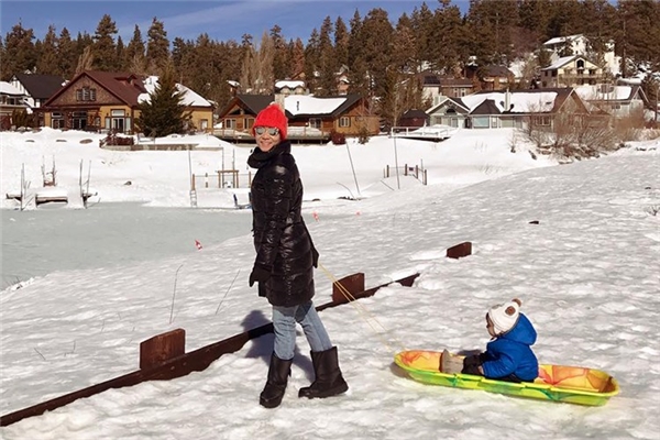 Hình ảnh con trai Thu Minh nghịch tuyết cùng bố mẹ trong chuyến đi Mỹ vào đầu năm nay.