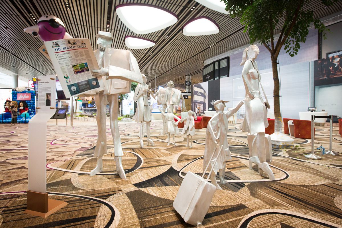 Gia Đình Du lịch" - tác phẩm điêu khắc bằng nhôm của nghệ sĩ Thụy Sĩ Kurt Metzler, được bày ở khu vực khởi hành quá cảnh