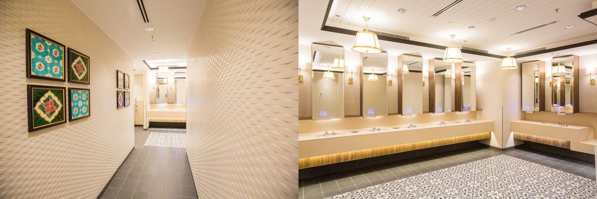 Ngay cả nhà vệ sinh trong khu di sản cũng được thiết kế tỉ mỉ với chủ đề Peranakan truyền thống của Singapore