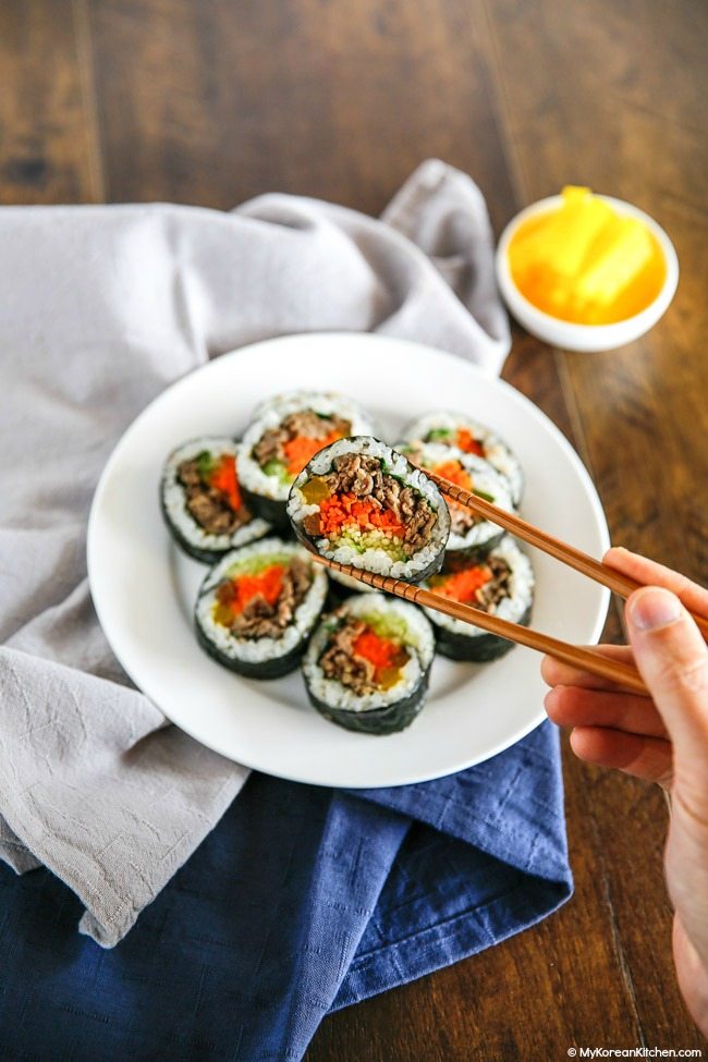 Kimbap là món cơm cuộn Hàn Quốc ngon nổi tiếng. Món ăn này làm dễ dàng và hấp dẫn mọi lứa tuổi. Công thức cơm cuộn thịt bò dưới đây đảm bảo nhà bạn ăn thích mê.