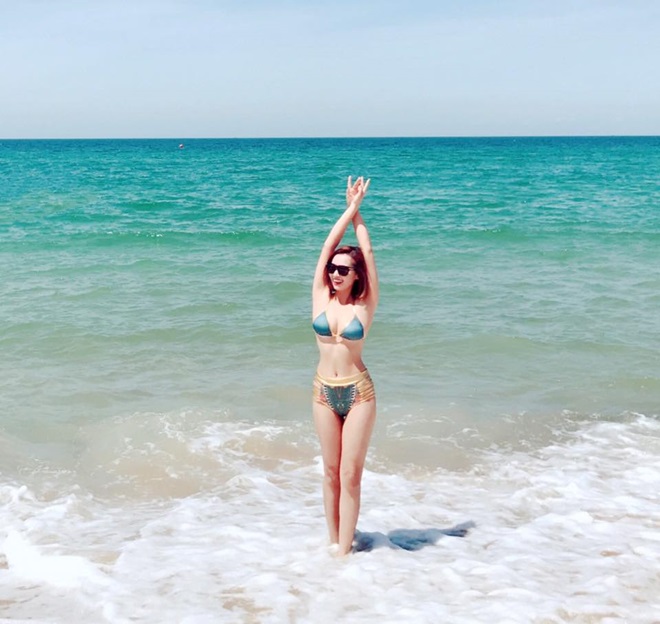 Rất hay cùng gia đình đi du lịch biển và bơi lội, không khó để nhìn thấy Lã Thanh Huyền khoe cơ thể nóng bỏng của mình qua những bộ bikini quyến rũ.