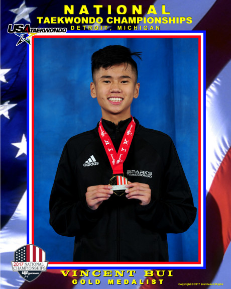 Vincent và các võ sĩ trẻ tuổi khác của võ đường Sparks tham dự Giải Taekwondo Quốc Gia 2017 ở Detroit vào cuối tháng Sáu và đầu tháng Bảy. Đây là Giải Taekwondo lớn nhất Hoa Kỳ cho mọi lứa tuổi, với hơn 3,600 võ sĩ từ khắp nơi trên toàn đất nước. Tám võ sĩ Sparks có đủ điều kiện tham dự các cuộc thi cấp quốc gia. Từ Detroit, nhóm bay tới Fort Lauderdale, Florida thi đấu Giải Nghiệp Đoàn Võ Sĩ Nghiệp Dư 2017, được tổ chức vào đầu tháng Bảy.