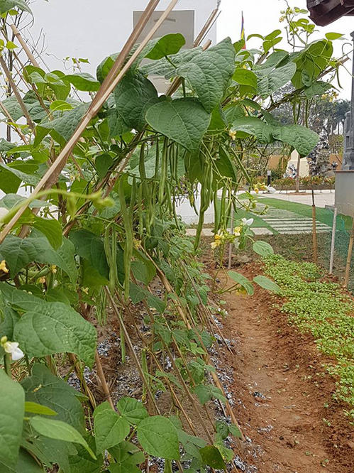 Trong vườn vừa nam ca sĩ có đủ loại cây từ đậu cô ve cho tới cây ớt chỉ thiên sai quả.