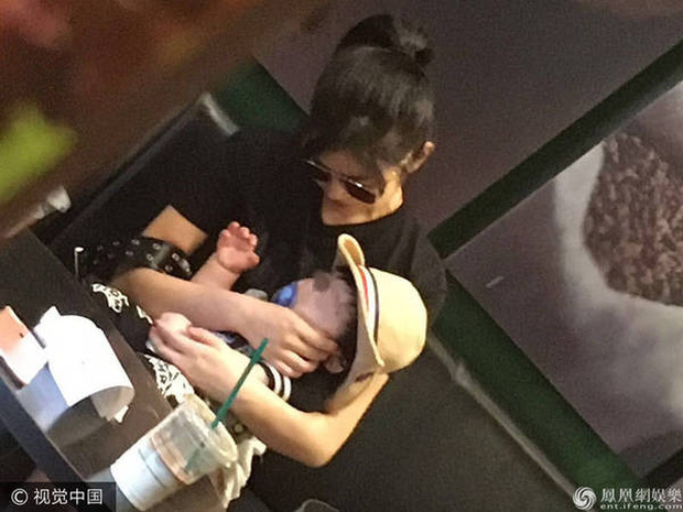 Mới đây, một fan may mắn bắt gặp nàng "Tiểu Long Nữ" Trần Nghiên Hy tại một cửa hàng cafe, còn ẵm trên tay con trai Tiểu Tinh Tinh đi cùng. Đây là một trong số những lần hiếm hoi fan "tóm" được hình ảnh hai mẹ con bên ngoài. Bé Tiểu Tinh Tinh dù được che mặt song nhiều người vẫn dễ dàng nhận ra hình ảnh bụ bẫm, đáng yêu của bé.