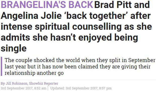 "Brangelina đă quay lại - Brad Pitt và Angelina Jolie trở về với nhau sau quá tŕnh cố vấn tinh thần căng thẳng, cô ấy cũng thừa nhận rằng không thích cuộc sống độc thân"