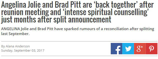 Nhiều báo chí đưa tin Angelina Jolie và Brad Pitt tái hợp. Người trong cuộc vẫn im lặng trước những tin đồn này. Sau khi tin tức Angelina Jolie và Brad Pitt tái hợp rầm rộ trên nhiều trang báo nước ngoài, một số nguồn tin khác đă lên tiếng.