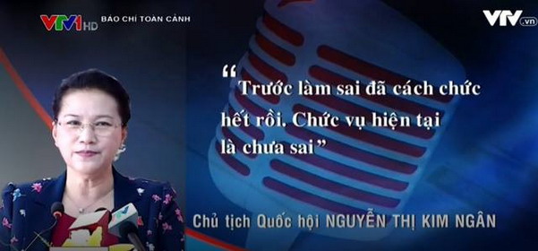 Như vậy, từ nay chỉ xử chức, chứ không xử người, như tội vắc-xin thì xử vắc-xin. Không xử người. Tội cái Bot thì xử cái Bot không xử người! phải không bà Ngân?