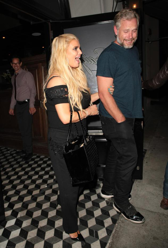Jessica Simpson vịn tay ông xã - cầu thủ bóng rổ Eric Johnson - rời nhà hàng Craigs ở Tây Hollywood vào rạng sáng hôm thứ 4, 20/9. Vợ chồng cô đã có một bữa tiệc tưng bừng mừng sinh nhật Eric kéo dài từ tối hôm trước.
