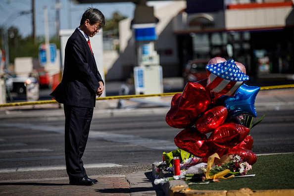 Tổng Lãnh Sự Nam Hàn, ông Key Cheol Lee, từ Los Angeles đã đến Las Vegas ngày thứ Ba, 3 tháng 10, 2017 để cầu nguyện cho các nạn nhân trong vụ nổ súng.(Getty Images)