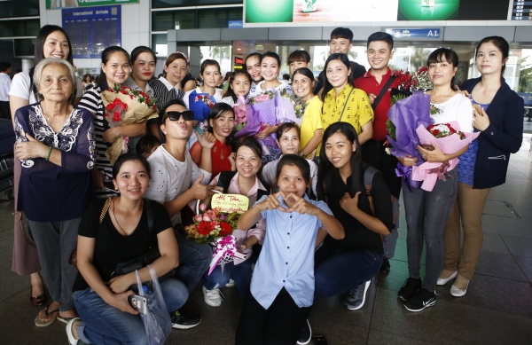 Diễn viên Hoà Hiệp cũng có mặt ở sân bay để đón đàn chị trở về Việt Nam biểu diễn.