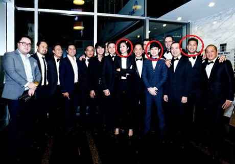 Doanh nhân Trung Tín chụp ảnh cùng hội bạn thân của em chồng Hà Tăng trong dịp sinh nhật Phillip Nguyễn - Ảnh: Internet