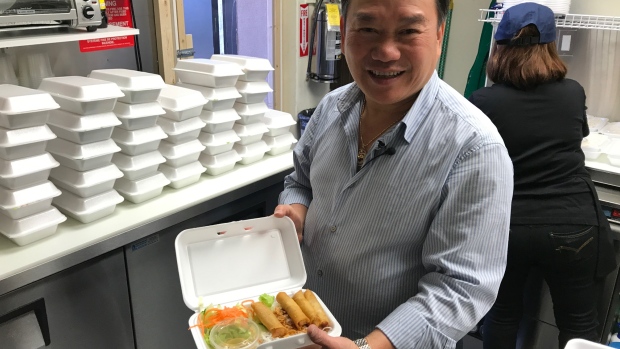 Tiệm Phở Tâm đã đóng cửa một thời gian hôm thứ Bảy, 7 tháng 10, để có thể chuẩn bị 100 phần bún chả giò tặng hội từ thiện. (CBC)
