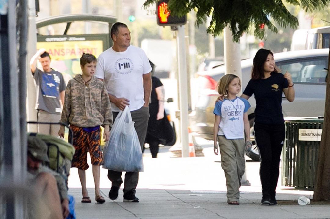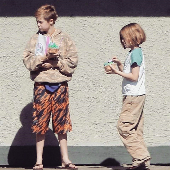 Hai chị em mặc bộ đồ nam tính thoải mái, cùng vệ sĩ và bảo mẫu dạo phố Los Angeles mua sắm, ăn kem vào ngày chủ nhật.