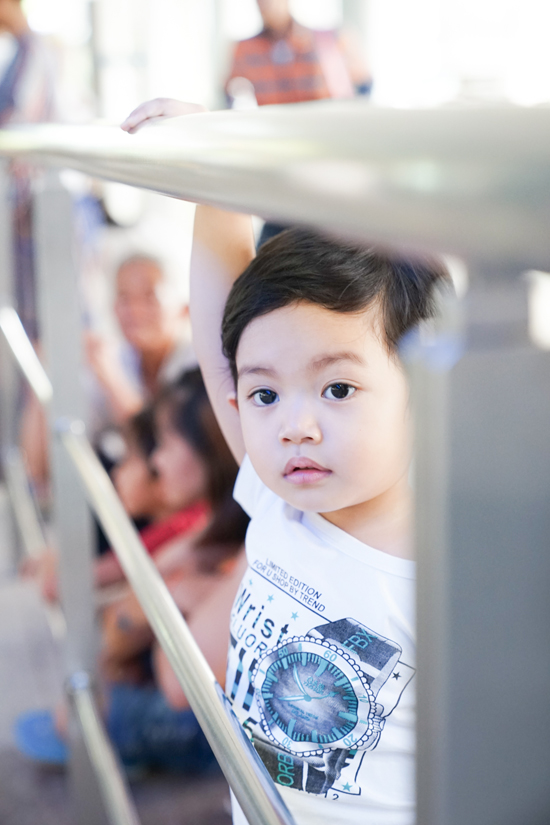Ra phi trường từ sớm nên Phan Hiển và con trai phải đứng đợi khá lâu.