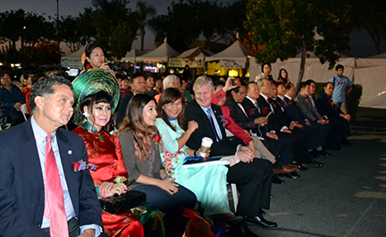 Sau lời phát biểu chào mừng của Trưởng Ban Tổ Chức, ông Hwang, Tổng Lãnh Sự Nam Hàn, các vị dân cử thành phố Garden Grove và các vị trong ban tổ chức cắt băng khai mạc trong tiếng vỗ tay vang dội của hàng trăm cư dân ngồi dưới khán đài, và chương trình văn nghệ tiếp tục cho đến 10 giờ tối với các MC người Hàn Quốc và cô Roxane Chow, anh Đỗ Tân Khoa người Việt Nam.