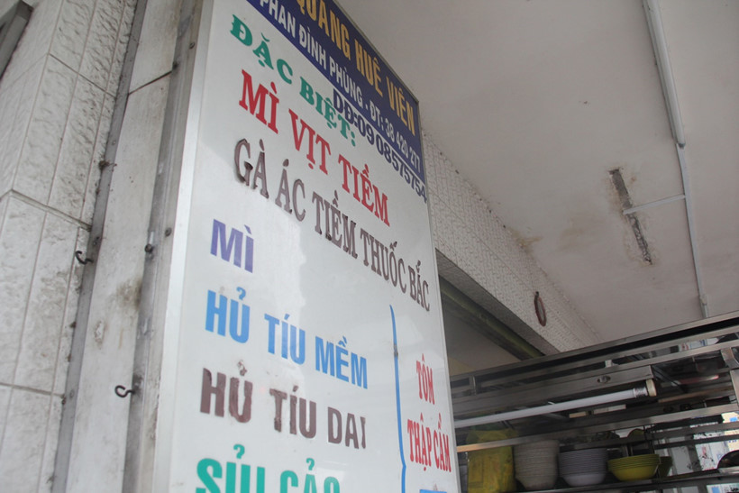 “Tui nhớ không lầm thì ông nội mở quán khoảng năm 1940, đặt tên quán là Quảng Huê Viên. Ngày xưa chỉ bán cháo thôi, rồi ông bán thêm há cảo, hoành thánh, hủ tiếu… sau cùng là món mì vịt tiềm”, bà Vân kể lại.