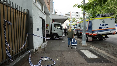 Cảnh sát đang điều tra tại nhà kho trên đường Steel Street, Newcastle. (Max Mason-Hubers/ Newcastle Herald)