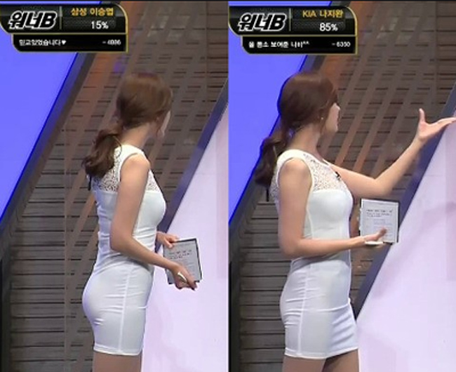 Trang phục gợi cảm đôi khi khiến nữ MC luống cuống chỉnh sửa ngay khi đang ghi hình.