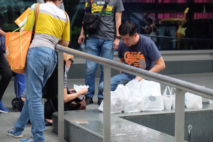 Cảnh mua bán, ngã giá iPhone X ngay bên ngoài Apple Store Singapore diễn ra khá tấp nập khi bên trong cửa hàng thông báo tạm dừng việc bán máy. Những người xếp hàng từ đêm cũng được hẹn quay lại vào lúc 3 giờ chiều (giờ địa phương). Lý do đưa ra là tạm thời hết hàng.