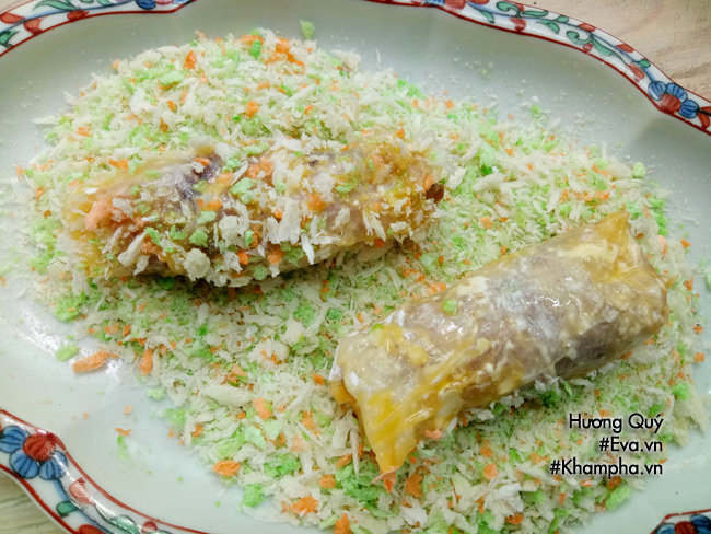 Bước 4: Xếp từng chiếc nem hải sản vào đĩa. Ăn kèm với bún, rau thơm chấm với mắm chua ngọt hoặc tương ớt.