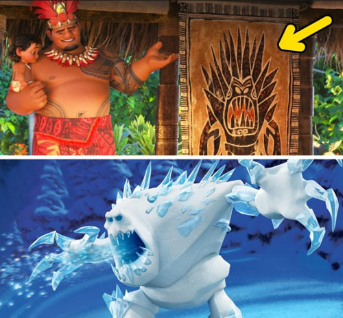 Đây có lẽ là bộ phim Disney thích giấu “trứng vàng” để cho khán giả đi tìm nhất. Chẳng hạn như cảnh ở bờ sông băng, bạn có thể thấy voi bố đang dẫn hai cô voi nhỏ đi chơi. Trùng hợp làm sao, hai cô này mặc đồ y như hai chị em Elsa và Anna trong Frozen.