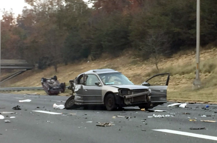 Khi trời sáng, đây là cảnh tượng hai chiếc xe bị tông với một tài xế bị thiệt mạng, hai người khác bị thương, trong khi chiếc thứ ba bỏ chạy đi mất. (Domen/ WTOP)