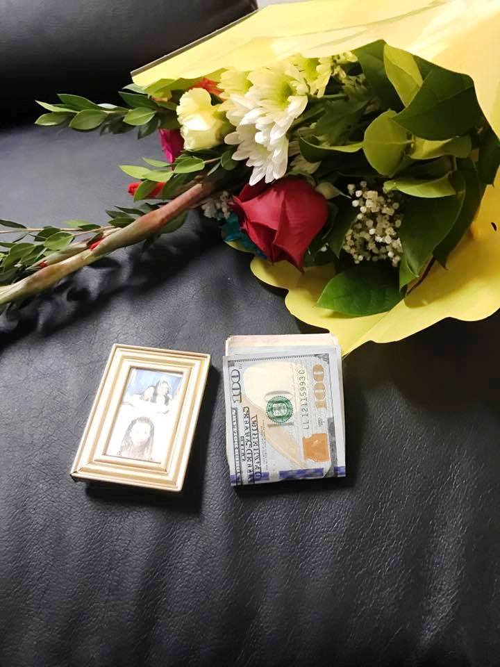Bà cụ bị lẫn, cất $1,500 trong bó hoa bán cho Luân hôm Chủ Nhật. (Luan Nguyen/ Facebook)