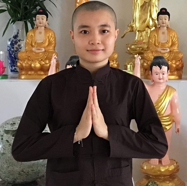 Hình ảnh tăng ni Vòng Kim Xuân trước khi xuống tóc