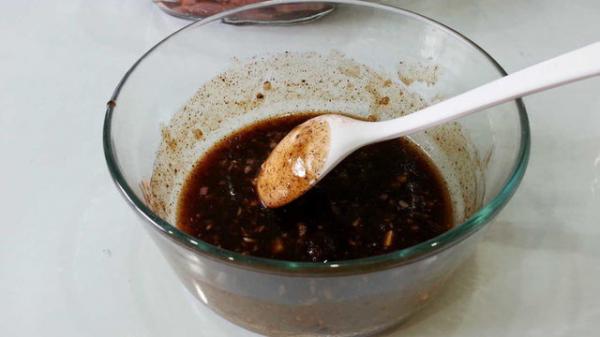 Hòa tan lần lượt đường nước nước mắm. Sau đó cho các nguyên liệu còn lại vào và trộn đều.
