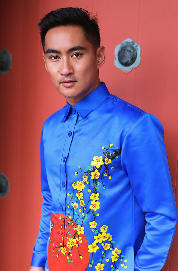 Chàng trai người Mỹ rất hào hứng khi có dịp diện áo dài Việt Nam.