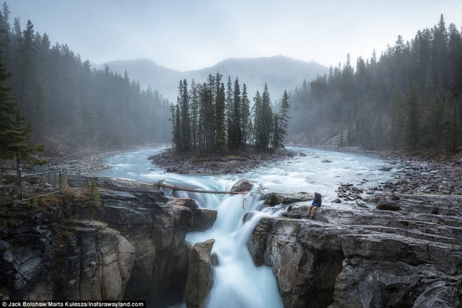 Thác Sunwapta trong vườn quốc gia Jasper ở Alberta, Canada. Đây là một trong hàng trăm bức ảnh phong cảnh tuyệt đẹp trên trang inafarawayland.com.