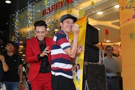 VBF-Trong lần ra mắt phim Tết mà Hoài Linh lại là diễn viên chính anh xuất hiện khá ngạc nhiên. Anh mặc đồ đơn giản và còn mang ... dép tông. Tuy nhiên may mắn có váy Như Quỳnh dài nên có phần nào che bớt được.