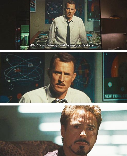 Hai phần phim đầu tiên của Iron Man đều ít nhiều gợi nhắc tới mối quan hệ bất đồng giữa hai cha con nhà Stark. Trong phần 1, Tony luôn phải vật lộn trong việc kế tục hoặc thay đổi đế chế kinh doanh vũ khí đầy thành công mà cha anh, ngài Howard Stark để lại. Hướng phát triển mới của Stark Industries không chỉ đơn thuần là việc chuyển từ buôn vũ khí giết người sang cứu người, mà còn là cách để một đứa con trai thoát khỏi chiếc bóng của cha mình.