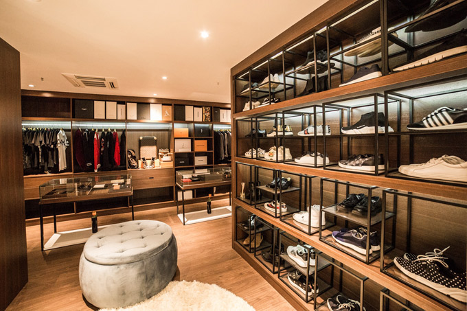 Là người chú trọng vẻ ngoài, Vũ Khắc Tiệp thiết kế hẳn một phòng để quần áo, giày dép trông giống hệt shop thời trang.