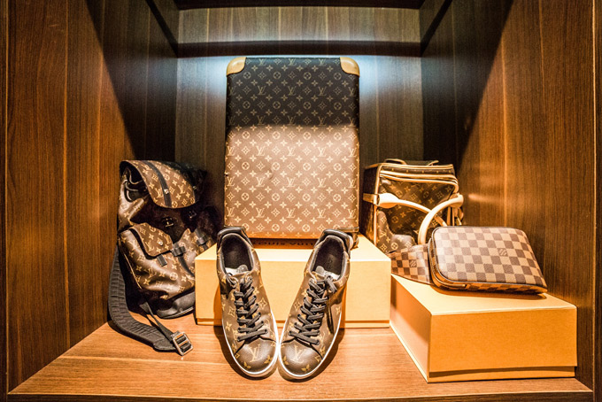 Anh có cả một bộ phụ kiện từ vali, ba lô, túi xách, giày... mang nhãn hiệu nổi tiếng thế giới.