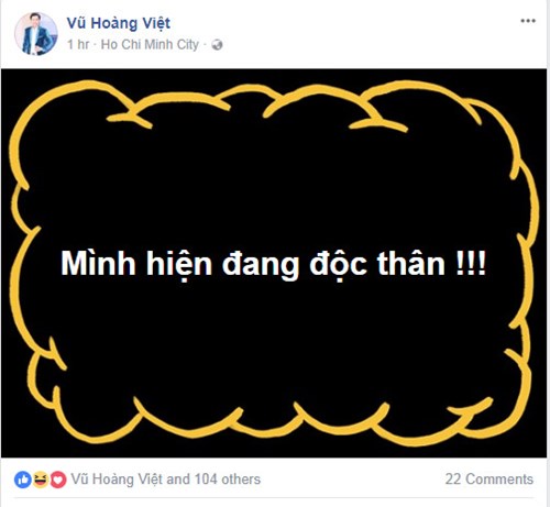 VBF-Vũ Hoàng Việt hiện đang chưa hẳn nói thẳng ra rằng chia tay với bạn gái U60. Nhưng anh đưa status "Độc thân" thì chắc chắn là anh không có bạn gái rồi. Được biết trước đó nhiều người đoán anh có bạn gái mới xinh như Hotgirl.