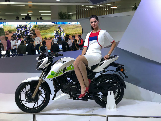 Chân dài trắng muốt bên xe mới tại 2018 Auto Expo.