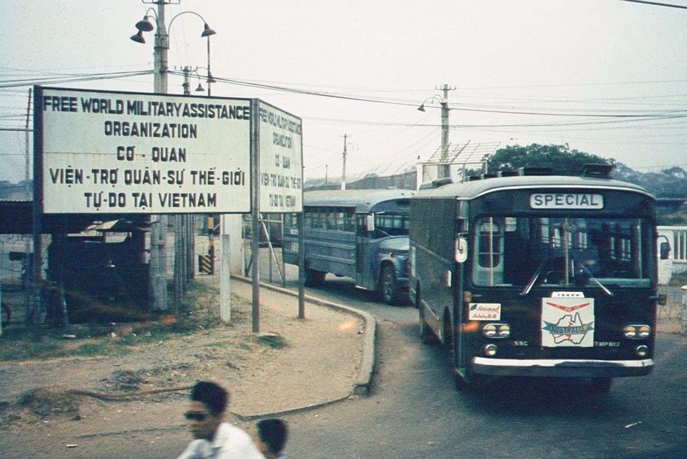 Xe buýt chuyên dụng dùng để vận chuyển nhân viên quân sự Australia ở Sài Gòn. Ảnh: Pronto.au104.org.