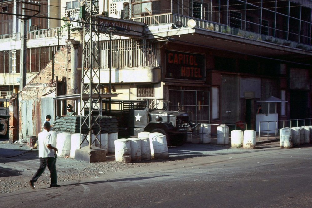 Bên ngoài cư xá Capitol của lính Mỹ trên đường Trần Hưng Đạo. Ảnh: Pronto.au104.org.