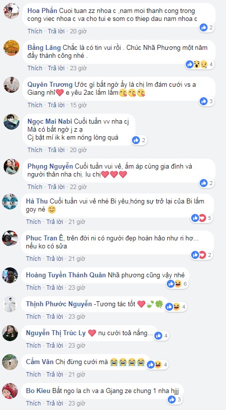 Theo đó, Nhã Phương viết, "Tết xong rồi, quay trở lại guồng công việc thôi cả nhà ơi. À, Phương bật mí xíu, sắp tới sẽ có một tẹo bất ngờ đầu năm cho mọi người, cùng đón chờ nha. Cuối tuần an nhiên nhé cả nhà".