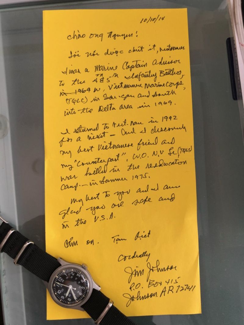 “Mỗi người tham chiến tại Việt Nam đều được cấp một cái Halmilton này. Lưu lạc suốt mấy chục năm trời, bây giờ nó lọt vào tay tôi, một người gốc Việt. Chính ông cựu chiến binh này cũng rất vui khi tôi đấu giá được,” ông kể.