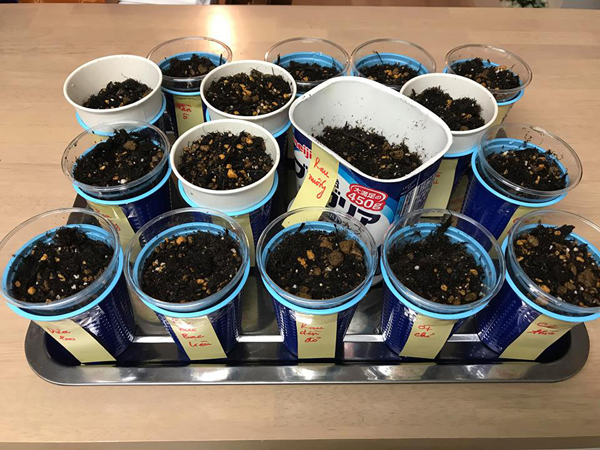 Sau khi ủ hạt giống lên mầm, chị mới cho sang đất trồng. Rau trồng từ hạt mất 2-3 tháng mới thu hoạch được, trong khi trồng từ gốc cây có sẵn chỉ 1-2 tuần.