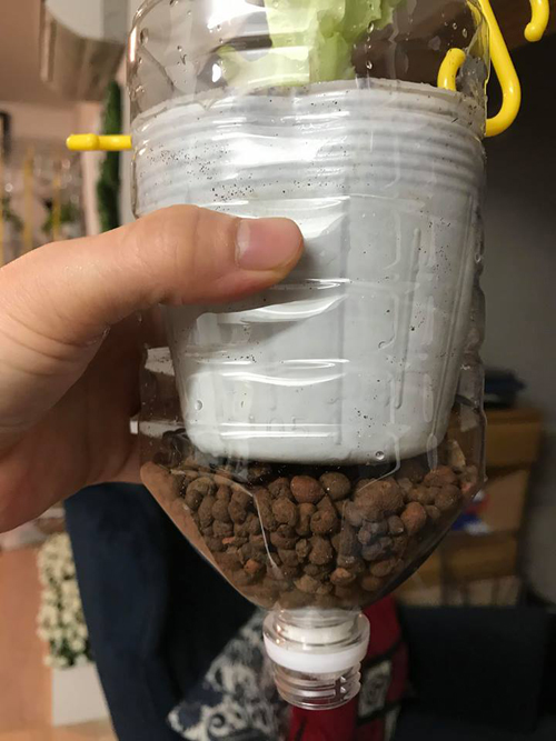 "Tôi đổ nước vào bình trên cùng, nước sẽ chảy nhỏ giọt xuống bình dưới cùng. Tôi tái sử dụng lại nước tưới đó vì có pha thêm nước dinh dưỡng hữu cơ (organic liquid fertilizer). Cách tưới như này cũng tiết kiệm nhiều", chị Quỳnh cho hay.