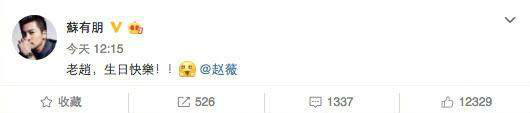 Trong khi đó Tô Hữu Bằng - người bạn vô cùng thân thiết, từng diễn xuất chung với Triệu Vy trong "Hoàn Châu cách cách" cũng chưa bao giờ quên sinh nhật của cô. Anh viết: "Lão Triệu, sinh nhật vui vẻ".