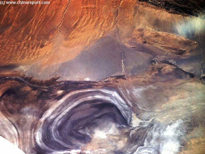 Ảnh chụp vệ tinh khu vực hồ muối La Bố Lạc. Những mảng trắng chính là muối. Ảnh: chinareport.com