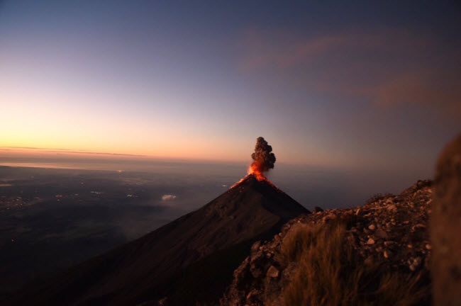 Núi lửa Acatenango, Guatemala: Du khách có cơ ngắm cảnh tượng núi lửa Fuego (ảnh) phun trào dung nham, nếu họ tham gia hành trình đi bộ và cắm trại trên núi lửa Acatenango.